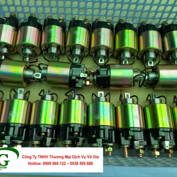 - Rơ-le khởi động (solenoid): Điều khiển dòng điện và đẩy bánh răng khởi động vào ăn khớp với bánh đà của động cơ.
